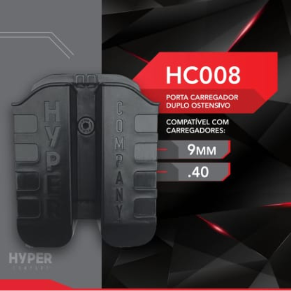 O Porta Carregador Duplo HC008 é ideal para uso ostensivo, compatível com carregadores de pistolas calibres .40 - 9mm - PT840 - TH9.
